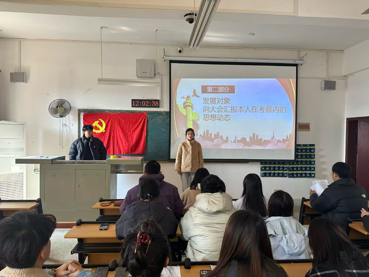 会议伊始,卢平同志首先明确了此次大会主题,严格按照组织秩序,通报了此次会议应到人数,实到人数以及缺席情况。随后,刘宇轩等5位发展对象依次上台发言,他们以认真、严谨的态度,全面向党组织汇报在发展期间的思想动态,工作态度以及学习情况。深刻总结与反思自己工作的不足,秉持严肃的态度汇报自身的入党动机,并坚定地表明对加入中国共产党的决心。